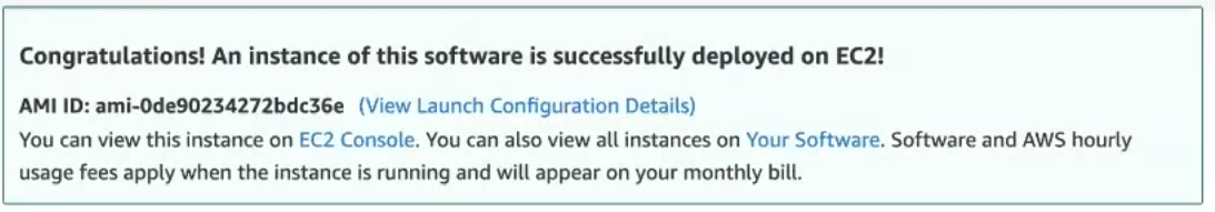 You now have an Lux node deployed on an AWS EC2 instance! Copy the AMI ID and click on the EC2 Console link for the next step.