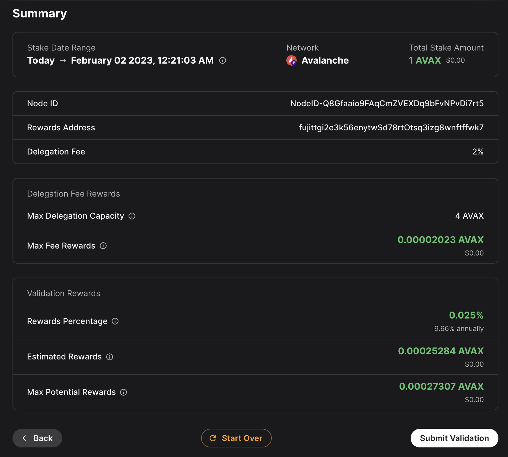 - Delegation Fee: You will claim this % of the rewards from the delegators on your node.