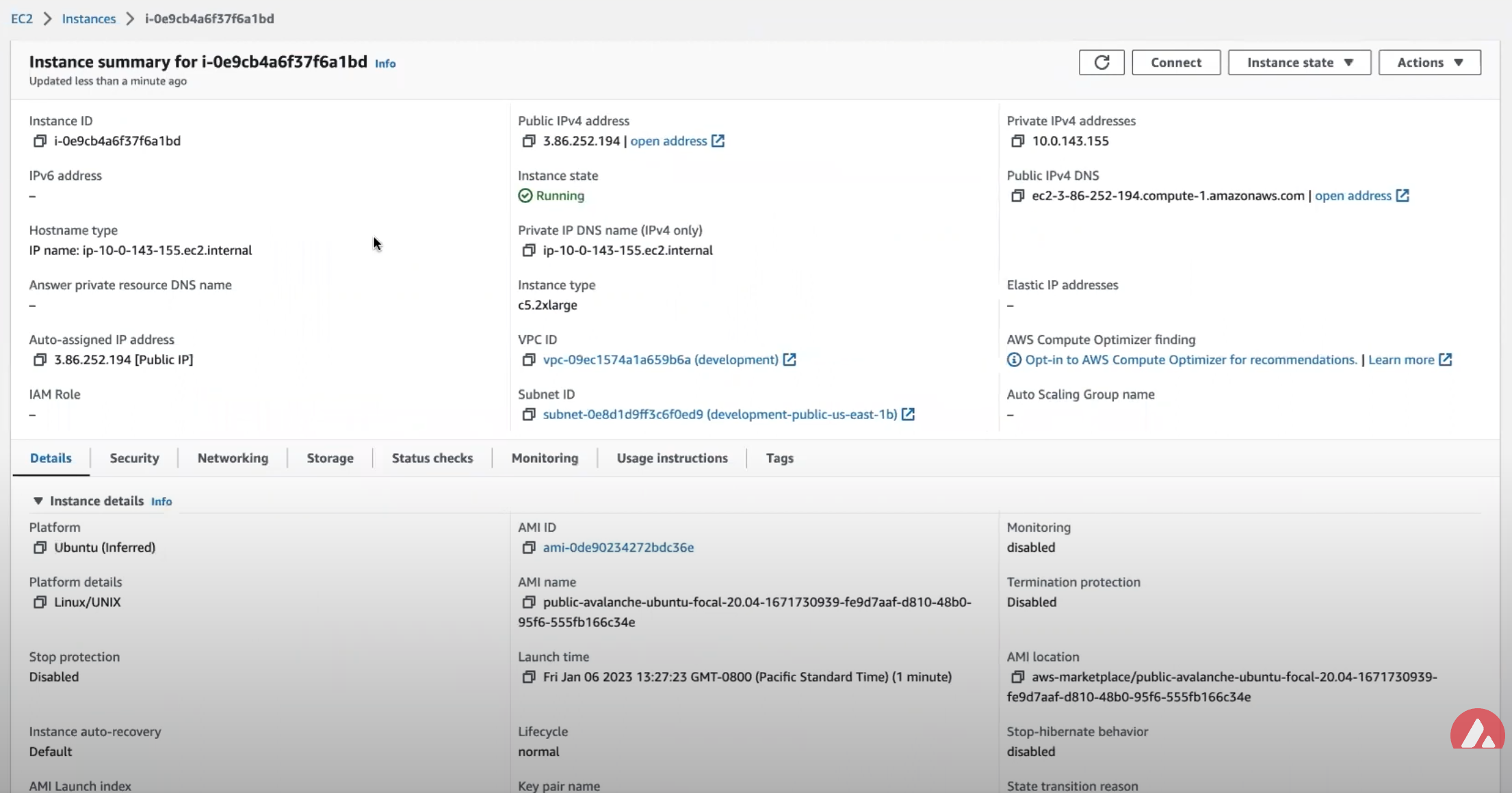Now take the AMI ID from the previous step and input it into the search bar on the EC2 Console. This will bring you to the dashboard where you can find the EC2 instances public IP address.