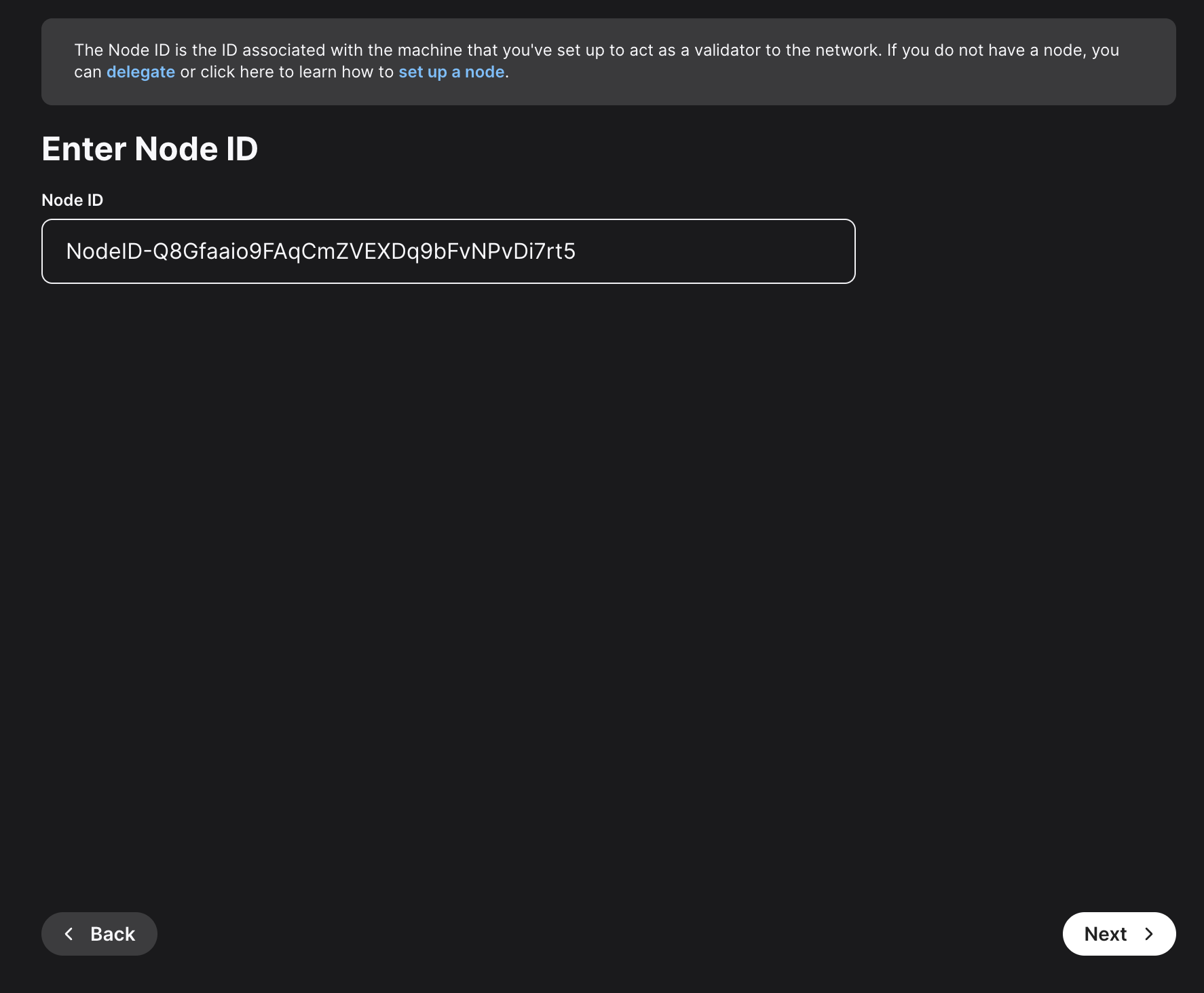 Take a note of the nodeID value which is returned as you'll need to use it in the next step when adding a validator via the Lux Web Wallet. In this case the nodeID is NodeID-Q8Gfaaio9FAqCmZVEXDq9bFvNPvDi7rt5