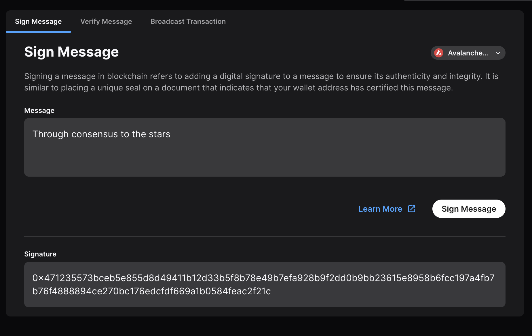 0x41 0x76 0x61 0x6c 0x61 0x6e 0x63 0x68 0x65 0x20 0x53 0x69 0x67 0x6e 0x65 0x64 0x20 0x4d 0x65 0x73 0x73 0x61 0x67 0x65 0x3a 0x0a